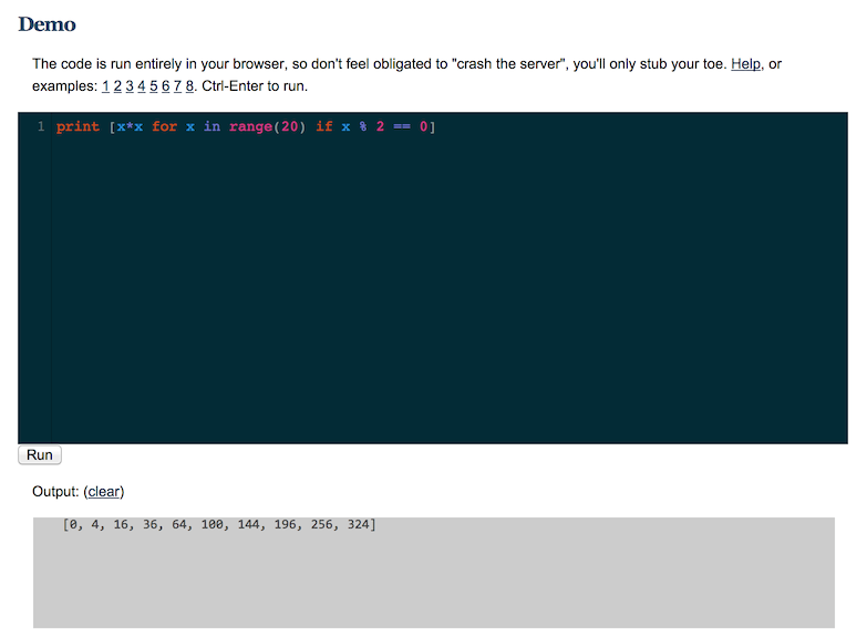 Run Python completely in the browser with Skulpt: